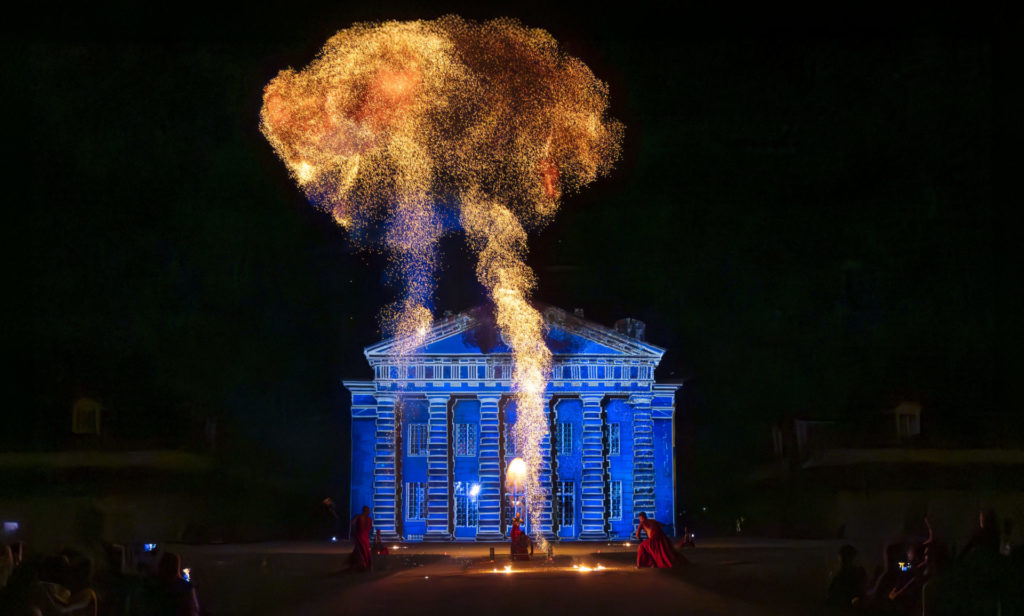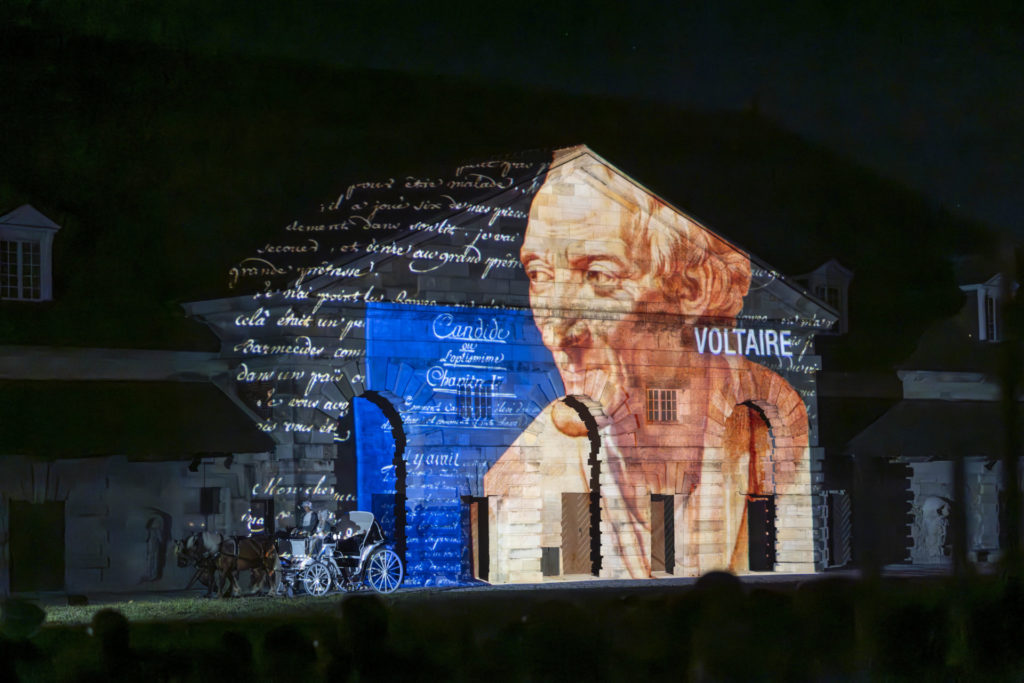 Dieses unumgängliche Sommerspektakel sublimierte die Architektur der Gebäude der Königlichen Saline durch Bilder, die von Laurent Langlois auf die Fassaden der Gebäude projiziert wurden, zu einer Originalmusik von Bruno Coulais, dem berühmten Komponisten von Filmmusik. Das Ensemble La Salamandre untermalte Lux Salina mit spektakulären Momenten rund um das Feuer.