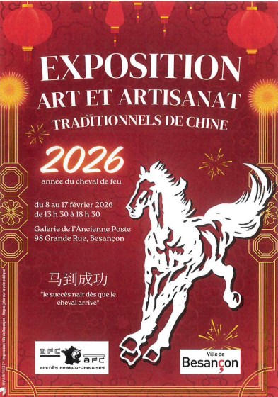 To celebrate the Chinese New Year on 17 February 2026 and the start of the Year of the Fire Horse, the Amitiés franco-chinoises association is organising an exhibition at the Galerie de l'Ancienne Poste in Besançon. The theme is traditional Chinese arts and crafts.