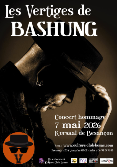 Culture Club Besac propose : LES VERTIGES DE BASHUNG Concert en hommage à un géant du rock français C'est une véritable invitation à plonger dans l’univers unique et envoûtant d’Alain Bashung, artiste inclassable, poète électrique, figure mythique de la chanson française. À travers ce spectacle hommage, nous vous invitons à (re)découvrir ses titres les plus emblématiques. Sur scène, ce sont 6 musiciens passionnés et chevronnés qui rendent hommage à Alain Bashung avec leur spectacle "Les Vertiges de Bashung" : avec Thierry Davoux au chant/guitare, Suzon Buatois au violoncelle, Jean-Paul Florès à la guitare, Pascal Poulain à la batterie, Rouge Baiser aux claviers et Jack Quevy à la basse. Un voyage musical où chaque mot compte, où chaque note résonne, où l’ombre de Bashung plane, entre rock, poésie et mystère. Un moment suspendu. Un hommage vibrant. La célébration d’un artiste éternel Ouverture des portes à 19h -Buvette et petite restauration sur place -Concert à 20h30 -