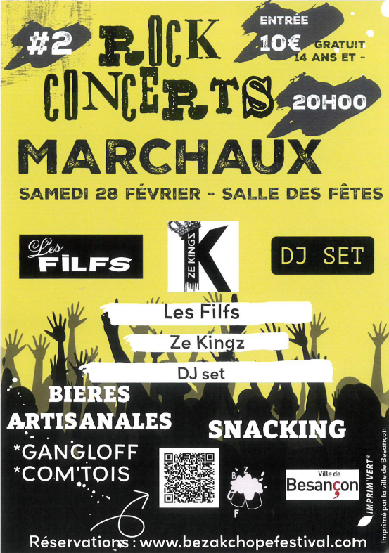 Venez passez une soirée ROCK en dégustant des bières artisanales! Au programme: 2 concerts + 1 DJ SET : THE FILFS - ZE KINGS - DJ SET. Buvette et snacking prévus.